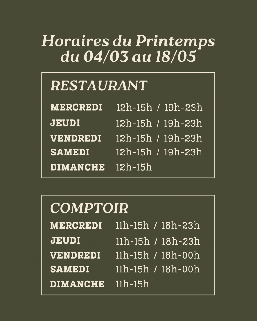 Côté comptoir, on privilégie le partage et la simplicité : des produits francs, à déguster autour d’un verre, dans une ambiance décontractée et chaleureuse.