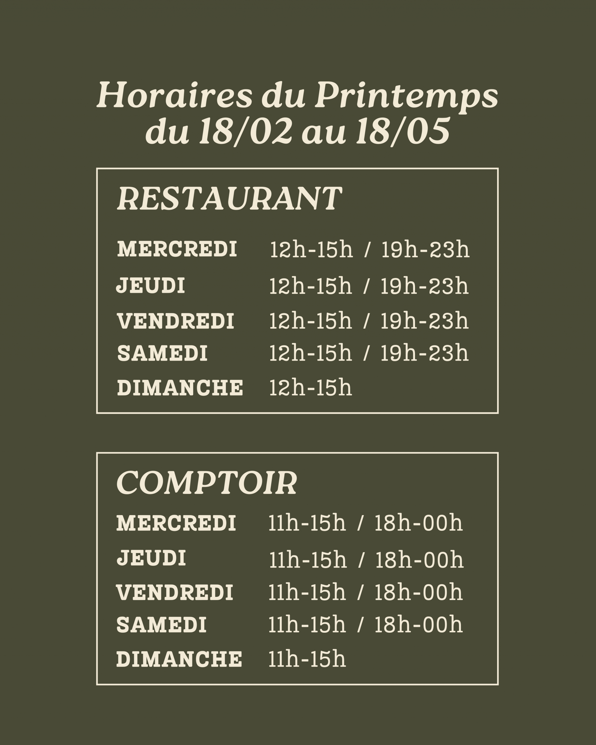À table ou au comptoir, Le Relais est un lieu de partage, pensé pour les déjeuners, les dîners et les moments à savourer autour de produits locaux.